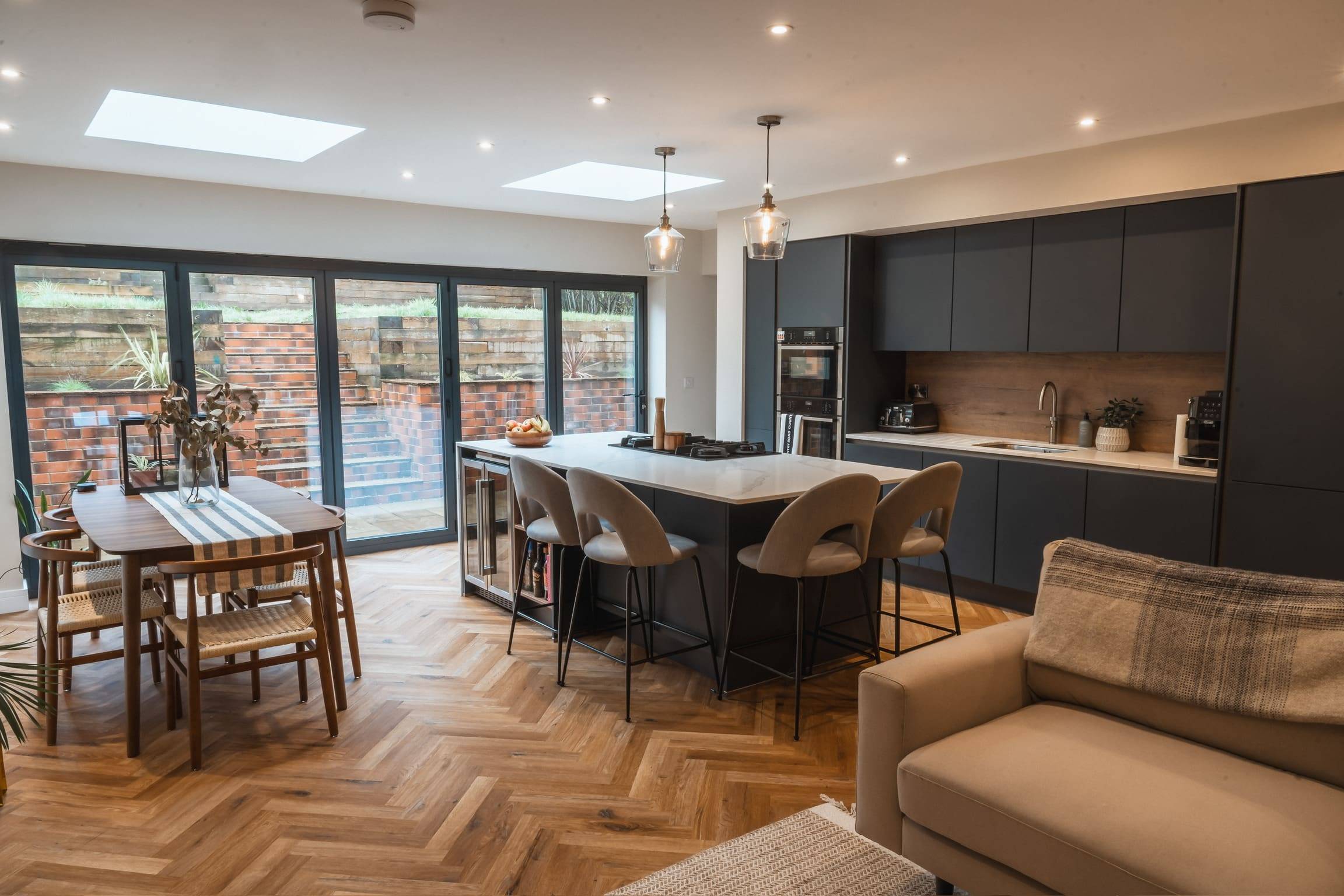 Many Chesterfield homeowners are also drawn to the flexibility of these spaces. An open plan kitchen design allows you to adapt zones to your lifestyle: from a breakfast bar that doubles as a home-working station, to a dining area that seamlessly links with your lounge.
